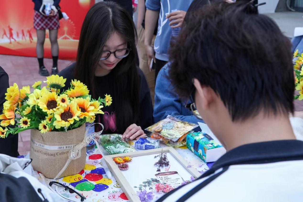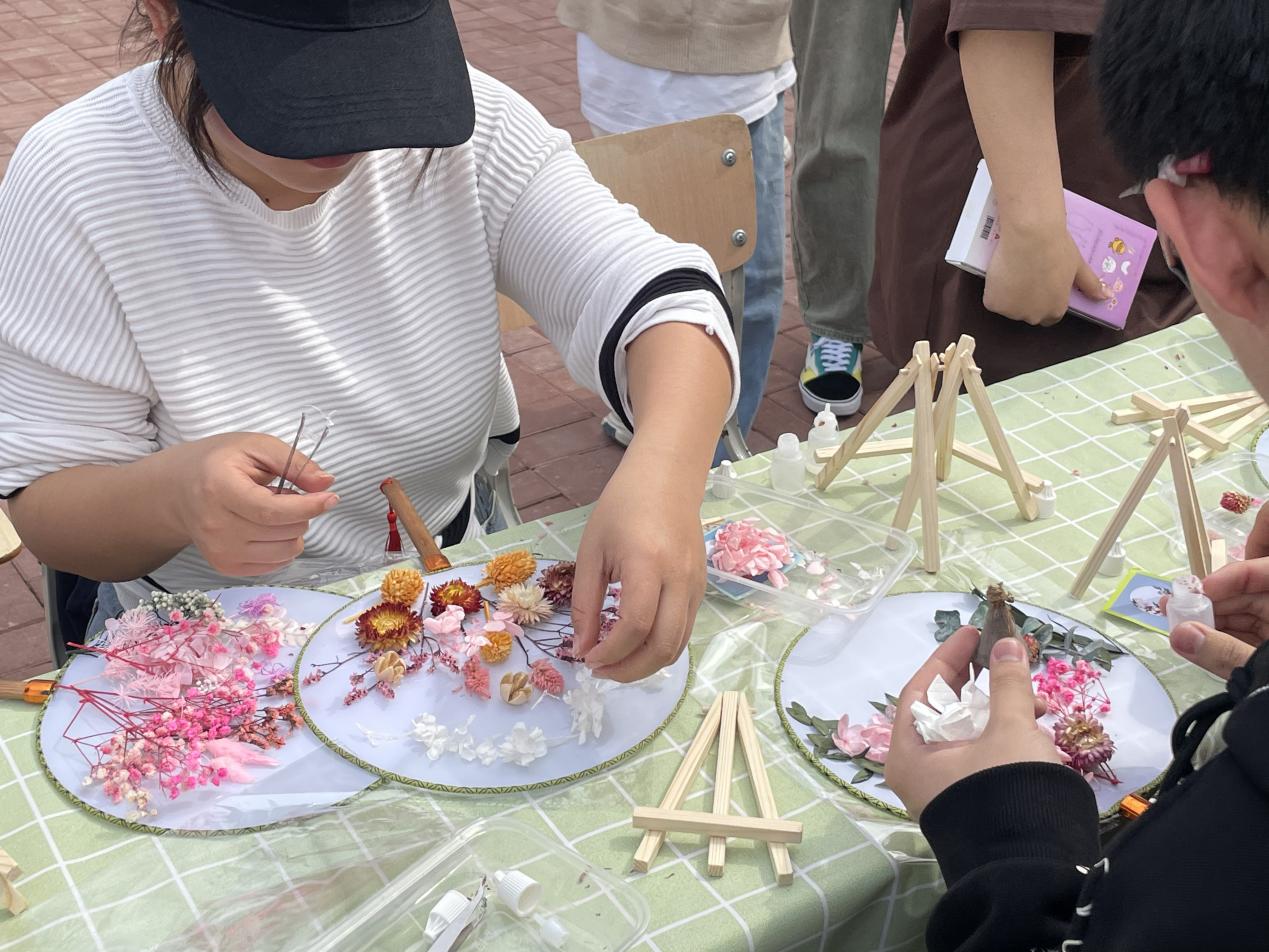 启动仪式上,由各二级学院和心理社团的同学们带来的学院“心流”品牌体验活动,瞬间吸引了大量同学驻足,活动包括永生花团扇、永生花相框、手工书签、肌理画、风铃和风筝DIY等,参与活动的同学们在构思、创作、分享手工作品中聚焦当下,以智慧心、以美润心、以劳健心,增加了积极情绪体验,更好地发掘了自身的潜能和创造力,提升了自我价值感。