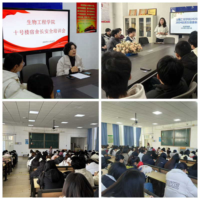 为了进一步加强宿舍管理,普及宿舍安全常识,提升宿舍文明水平,促进学生良好生活习惯的养成,2024年11月21日至25日,生物工程学院组织召开了全体宿舍长专题会议,学院党总支书记王玲和辅导员老师分批次对宿舍长进行了培训,并听取了学生对学院学生管理服务工作的建议。