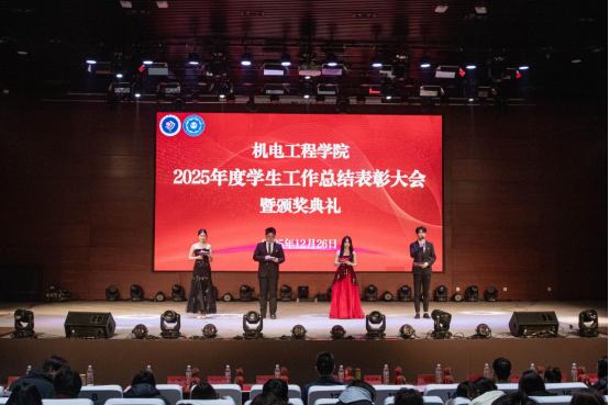 为全面回顾2025年学生工作成果,表彰在学术竞赛、技能实践、文体活动、志愿服务等领域表现突出的优秀集体与个人,凝聚青春力量、激发奋进斗志,12月26日下午,机电工程学院在现代学院报告厅组织开展2025年度学生工作总结表彰大会暨颁奖典礼。学校领导程非凡、韩淑君、张新鹏及学工部负责同志出席活动,机电工程学院领导班子成员和机电工程学院全体辅导员老师、教务老师及400余名学生共同见证这一荣耀时刻。