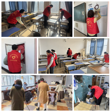 会后,全体党员迅速行动,按照分工投入志愿服务。在教室区域,党员同志们分工协作,认真清理卫生死角,擦拭门窗玻璃,整理课桌椅,并对多媒体设备、照明设施、电路开关等逐一检查,对发现的故障隐患及时登记,联系相关部门跟进整改,确保教室环境干净整洁、秩序规范。