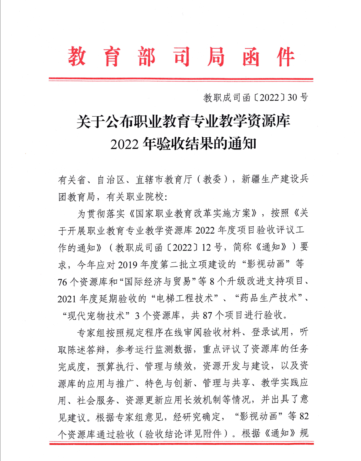 近日,教育部发布了《关于公布职业教育专业教学资源库2022年验收结果的通知》(教职成司函〔2022〕30号),现代学院牵头主持建设的高等职业教育无人机应用技术专业教学资源库项目顺利通过验收。