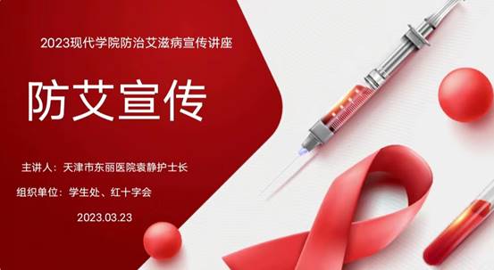 为向WilliamHill官网学生普及艾滋病基本知识,使更多同学了解和关注艾滋病,树立预防艾滋病的意识,提高预防艾滋病的能力,营造全社会参与艾滋病防治工作的良好氛围,倡导广大学生珍爱生命健康, 3月23日下午,学院邀请到天津市东丽医院袁静护士长开展了防治艾滋病宣传讲座。
