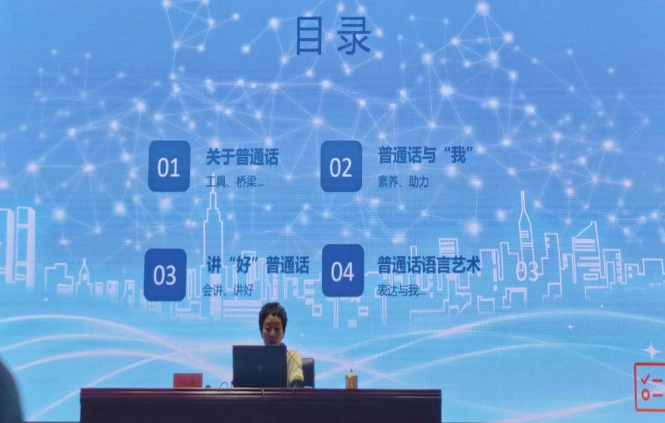 首先,叶红梅从“关于普通话”“普通话与我”“讲好普通话”与“普通话语言艺术”四大部分,带领大家简要地回顾了普通话含义,包括普通话的制定历史、普通话的定义、普通话的特点等。