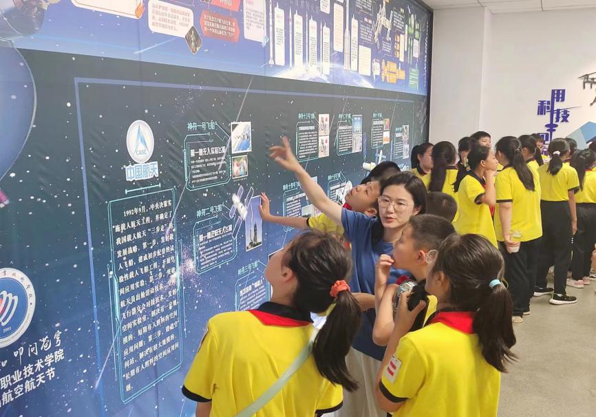 无人机应用技术专业的老师和同学们承担接待、讲解、志愿者服务任务,老师们通过通俗易懂的语言、妙趣横生的视频、结合现场展示的无人机,生动形象地向孩子们介绍和讲解了无人机的发展历史、应用、基本使用方法等,孩子们听得津津有味,在讲解无人机飞行原理、操控原理回答环节,不少孩子有备而来,积极互动参与回答问题。活动过程中,孩子们不仅亲身参与了VR视觉体验及无人机模拟飞行体验,更在老师和志愿者们的带领下感受通航有人机模拟飞行体验,在实践中感受科学的乐趣与魅力。