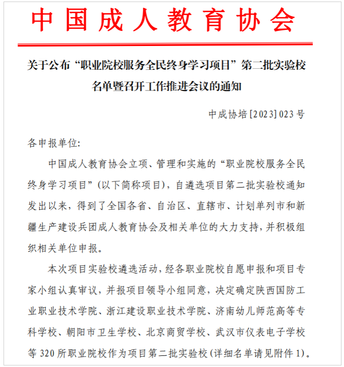 近日,中国成人教育协会公布了“职业院校服务全民终身学习项目”第二批实验校名单,WilliamHill官网成功入选。