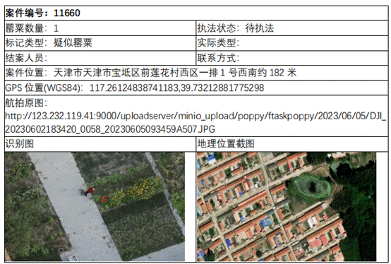 师生利用无人机飞行平台搭载的高清摄像头,一方面通过空中悬停拍照、摄像等功能,实时获取监测影像数据,进行分析排查;另一方面,在飞行结束后,系统将数据上传到罂粟图像识别中心,对影像数据进行两轮色彩和形态AI识别与筛查,精度高达90%以上。工作完成后,团队将巡查发现的疑似案例提交给当地公安局进行实地复核,大大缩短了巡查时间,提高了工作效率。