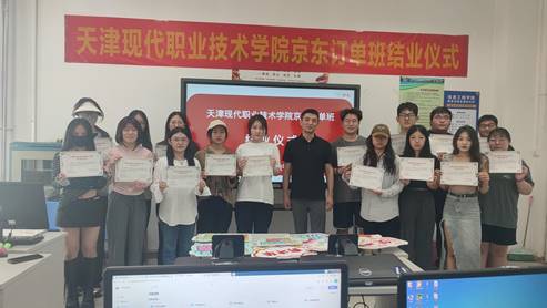 6月18日下午,京东订单班的师生举行了结课仪式。仪式上,京东集团的刘冬艳老师为同学们颁发了结业证书,电子商务教研室主任张金泽也为同学们送上了暖心寄语。