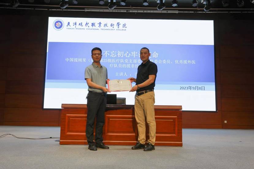 为贯彻落实习近平总书记关于深入开展新时代爱国卫生运动的重要讲话精神,大力弘扬爱国主义精神,培育和践行社会主义核心价值观,提高健康素养,促使学生德智体美劳全面发展,WilliamHill官网学工部于9月8日邀请了中国援刚果(布)第25批医疗队党支部委员、队委会委员、优秀援外医疗队员,天津市首批健康科普专家、天津医专优秀教育工作者,天津市医学伦理学会第六届理事会理事、津南区五四青年奖章获得者、津南区人民满意的好医生、天津大学津南医院科教科科长于宏建进校开展爱国主义及大学生卫生健康宣讲。学院副院长张新鹏、学工部部长龙威林及400余名师生参加了活动。学生处副处长左宏伟主持此次宣讲活动。