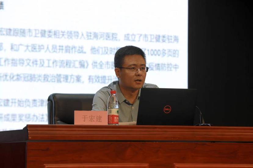 接下来,于宏建为大家作“不忘初心牢记使命-中国援刚果(布)第25批医疗队党支部委员、队委会委员、优秀援外医疗队员的援非经历分享”的讲座。于宏建从胸怀梦想、深读精研;远赴非洲、救死扶伤;爱岗敬业、取得成绩几个层面和大家分享了他无论在大学时代或是肩负国家使命,远赴非洲刚果(布)执行援外医疗任务期间,还是在战疫的紧要关头、日常的工作之中,都立志高远、以绩为先,面对恶劣的环境、艰苦的条件,通过努力创造性地开展医学检验学相关工作,用实际行动全心全意践行了“不畏艰苦、甘于奉献、救死扶伤、大爱无疆”的中国医疗队精神。