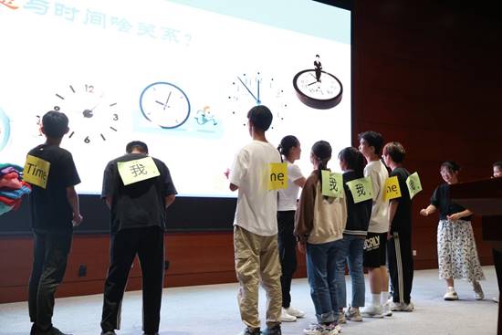 王嘉嘉老师倡导同学们要学会珍惜时间,减少拖延,向优秀的时间管理者请教,具备管理时间的能力,最终实现做时间的主人。她用提问和游戏的形式与同学们积极互动,现场气氛十分活跃,同学们纷纷踊跃参与其中。