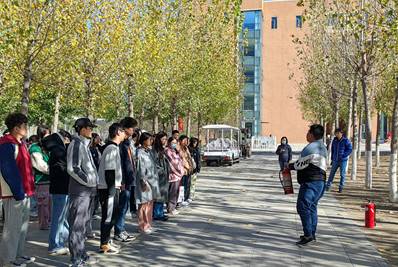 上午10点30分,图书馆在馆学生在接到消防警报后,在馆员教师的指挥下快速有序地从楼梯撤离,最终安全到达图文信息B座楼前集合。消防逃生演练结束后,保卫处刘旺华老师为参加活动的教师和学生讲解逃生要领,随后现场演示了灭火器的使用方法,教师和学生代表也纷纷拿起了灭火器进行实操演练,通过演练对灭火器的使用方法得到了全面了解。