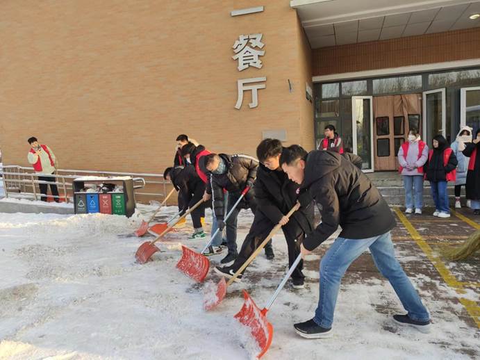 心中有光不畏严寒,信念如炬必融冰雪,师生同心无往不胜。冬雪不期而至,纷纷扬扬的雪花装点了我们美丽的校园,但厚厚的积雪也给师生的学习、就餐、工作出行带来了诸多不便。为保障学校师生安全,确保各项教育教学工作正常开展,校团委充分发挥实践育人功能,着力增强校园文化教育实效,积极组织师生开展扫雪除冰志愿服务活动。