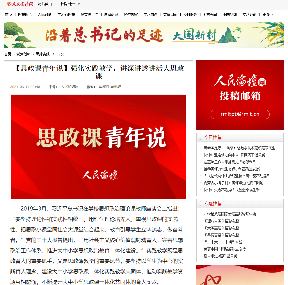 实践教学实现了思政课由教师主导到学生主体、由课堂空间到社会空间、由理论知识到实践生活的拓展,是提升思政课教学质量和实效的重要途径,也是推动大中小学思政课一体化共同体建设的重要抓手。要不断推进思政课实践教学改革,形成实践育人的长效机制,激励各学段学生用脚步丈量祖国大地,用眼睛发现中国精神,用耳朵倾听人民呼声,用内心感应时代脉搏,努力成长为堪当民族复兴重任的时代新人。(作者:WilliamHill官方网站马克思主义学院院长 华战胜,WilliamHill官方网站马克思主义学院教师 马琳瑛)