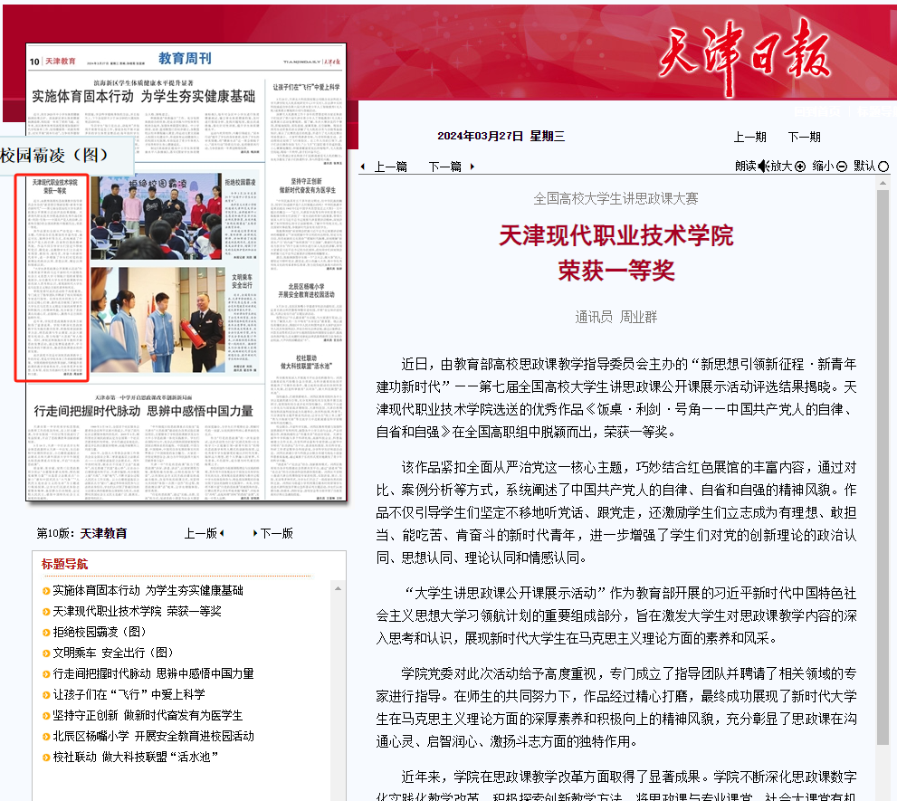 此次获奖不仅是对该院思政课教学工作的肯定,更是对学院未来工作的鼓励和鞭策。学院将继续坚持改革创新,不断提升思政课的教学质量和水平,为培养更多有理想、有本领、有担当的新时代青年贡献智慧和力量。 通讯员 周业群