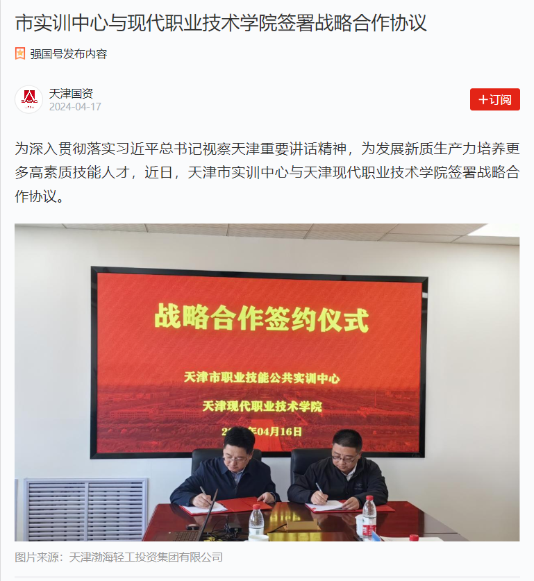 为深入贯彻落实习近平总书记视察天津重要讲话精神,为发展新质生产力培养更多高素质技能人才,近日,天津市实训中心与WilliamHill官方网站签署战略合作协议。