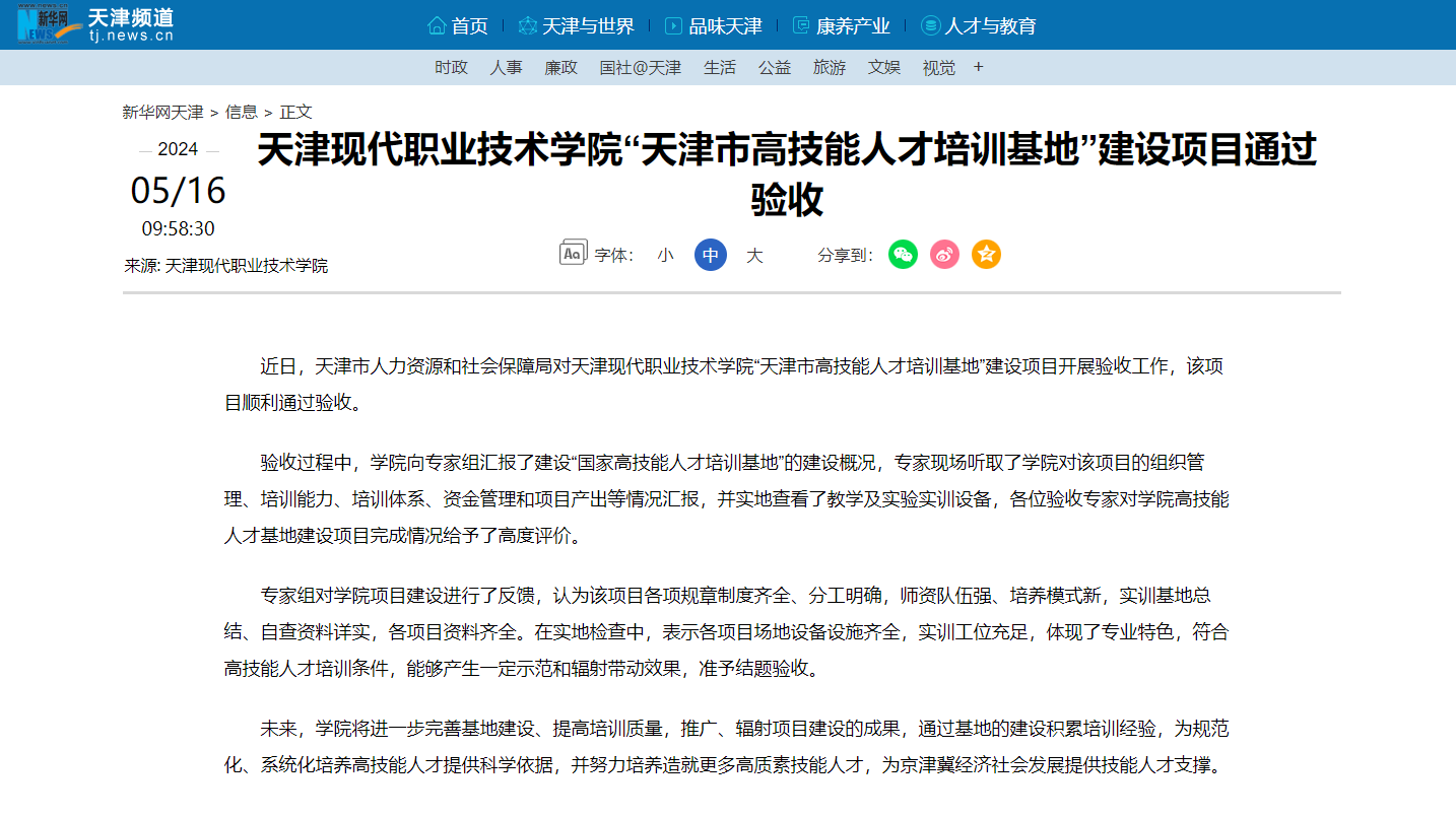 近日,天津市人力资源和社会保障局对WilliamHill官方网站“天津市高技能人才培训基地”建设项目开展验收工作,该项目顺利通过验收。