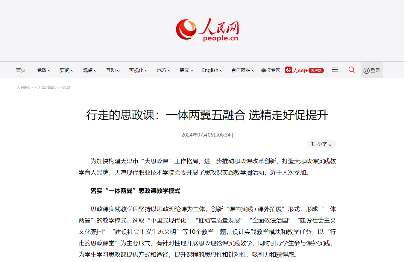 思政课实践教学周依托“行走的思政课堂”,以思政课教师加学生班级形式开展活动。走进西青档案馆和天津市规划馆,通过了解一座城、一个区的历史、规划和发展,感受何为以文化人、以文惠民、以文润城、以文兴业。走进新天钢集团,学生们从多角度、多维度感受天津工业的发展变化。走进津南区北闸口镇前进村,加深对“民生是人民的幸福之基”的理解。走进天津滨海汽车工程职业学院的“主题教室”、天津工业职业学院的“冶金发展史和劳模展厅”等,感受职业院校和职业教育的魅力。