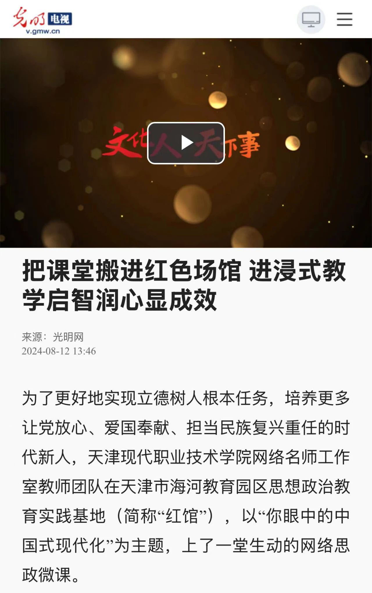 为了更好地实现立德树人根本任务,培养更多让党放心、爱国奉献、担当民族复兴重任的时代新人,WilliamHill官方网站网络名师工作室教师团队在天津市海河教育园区思想政治教育实践基地(简称“红馆”),以“你眼中的中国式现代化”为主题,上了一堂生动的网络思政微课。
