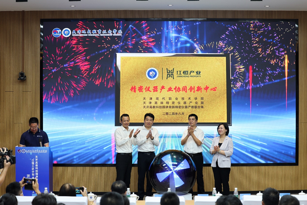 与会领导共同为“精密仪器产业协同创新中心”揭牌,标志着学院与天开高教科创园津南园精密仪器产教联合体的合作迈出了坚实的一步,搭建起津南区教育链、人才链与产业链、创新链有机衔接的新载体,在联合体实体化运行、服务企业方面取得新突破,实现了传统优势专业的再升级、再示范。