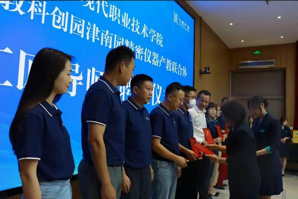 现代学院和产教联合体共同聘请“海河工匠”崔少华为“工匠导师”,聘请天津江恒产业管理有限公司总经理李明山等企业代表为“产业导师”。
