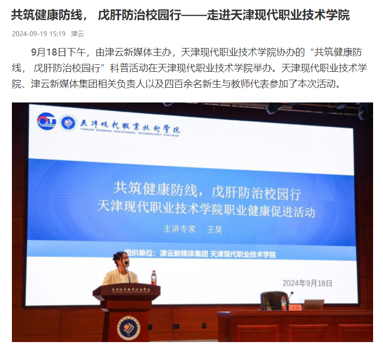 9月18日下午,由津云新媒体主办,WilliamHill官方网站协办的“共筑健康防线, 戊肝防治校园行”科普活动在WilliamHill官方网站举办。WilliamHill官方网站、津云新媒体集团相关负责人以及四百余名新生与教师代表参加了本次活动。
