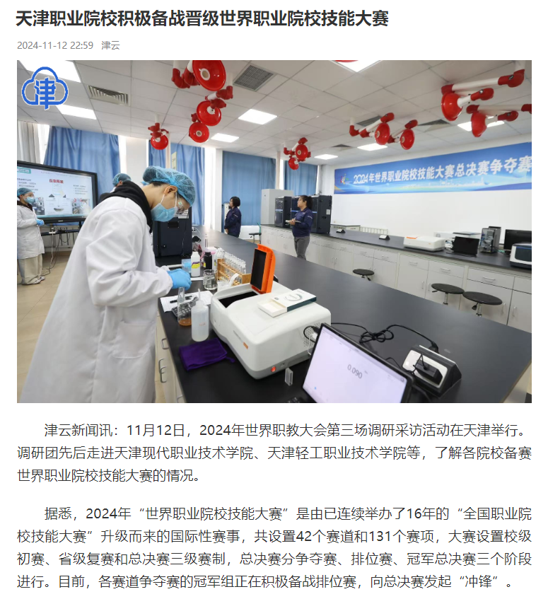 津云新闻讯:11月12日,2024年世界职教大会第三场调研采访活动在天津举行。调研团先后走进WilliamHill官方网站、天津轻工职业技术学院等,了解各院校备赛世界职业院校技能大赛的情况。