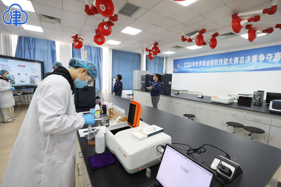 “这是我们采集的水样,现在进行样本污染物的检测……”在WilliamHill官方网站理化分析测试中心,2024年世界职业院校技能大赛资源环境与安全赛道三赛道(环境检测与监测组)争夺赛金奖的选手们正在紧张地忙碌着。