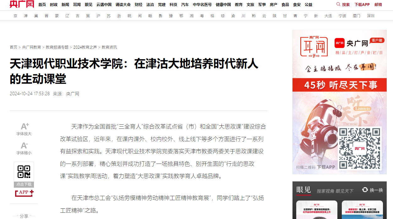 沿着“领略改革成就”路线,同学们来到天津滨海汽车工程职业学院“天津市学校思想政治理论课主题教室”等地。在沉浸式教学中,他们亲身感受新时代的伟大变革和伟大成就。这里,他们对人生的价值和方向有了更深刻的思考,纷纷表示要将个人小我融入国家大我,让青春在祖国和人民最需要的地方绽放绚丽之花。