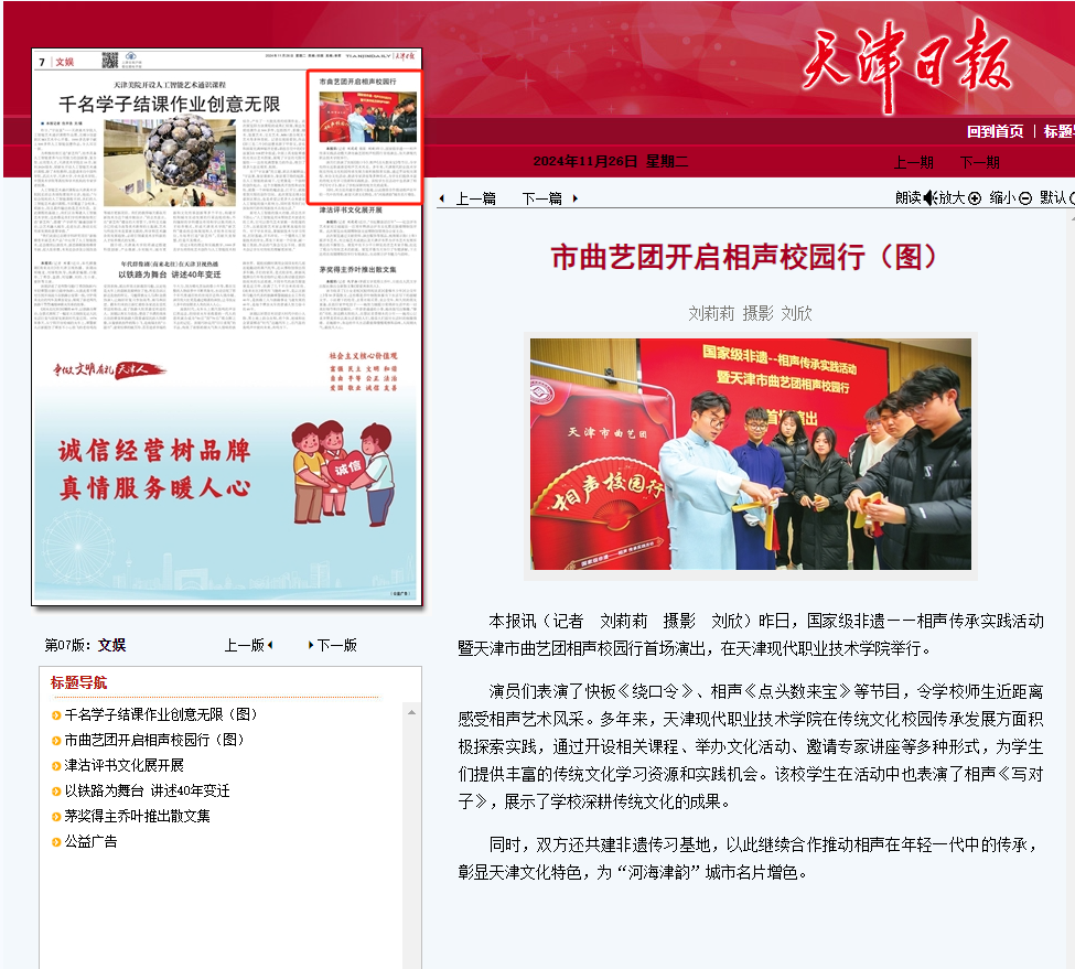 同时,双方还共建非遗传习基地,以此继续合作推动相声在年轻一代中的传承,彰显天津文化特色,为“河海津韵”城市名片增色。