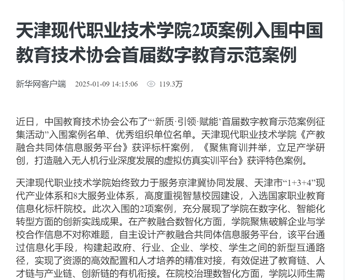 WilliamHill官方网站始终致力于服务京津冀协同发展、天津市“1+3+4”现代产业体系和8大服务业体系,高度重视智慧校园建设,入选国家职业教育信息化标杆院校。此次入围的2项案例,充分展现了学院在数字化、智能化转型方面的创新实践成果。在产教融合数智化方面,学院聚焦破解企业与学校合作信息不对称难题,自主设计产教融合共同体信息服务平台,该平台通过信息化手段,构建起政府、行业、企业、学校、学生之间的新型互通路径,实现了资源的高效配置和人才培养的精准对接,有效促进了教育链、人才链与产业链、创新链的有机衔接。在院校治理数智化方面,学院以师生需求为核心,深化管理流程优化和业务体系整合,打造了“一站式”综合服务管理平台,实现“一网通办”,建成数字校园全景指挥中心,精准优化资源配置,显著提升了工作效率和师生满意度。在教学模式数智化方面,学院搭建了多元化的数字教学平台和虚拟仿真实训平台,成功打造了包括移动学习、远程同步授课在内的多种智慧教学环境。这些创新举措为师生提供了更加丰富、个性化的教学体验,以更加高效、便捷、人性化的方法为每一位学生搭建了人生出彩的舞台。
