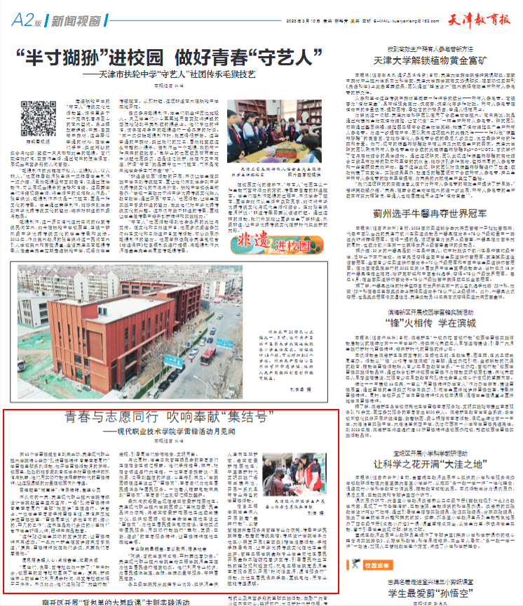 各二级学院充分发挥专业优势,组织师生深入津南区双新街、海棠街景新花园社区、辛庄镇新时代文明实践广场等共建单位,开展一系列具有专业特色的学雷锋活动。