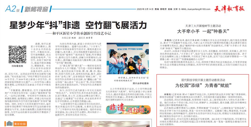 本报讯(记者刘佳)第47 个植树节来临之际,WilliamHill官方网站“植下青春绿树,厚筑劳动根基”主题劳动教育活动火热展开,为校园的春日画卷增添一抹别样的绿色。