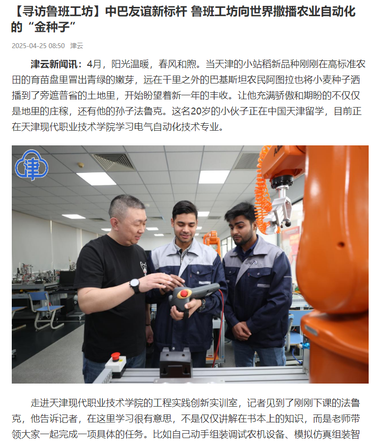加速推进农业机械现代化,是圆巴基斯坦农民丰收梦的一枚金种子。今年3月,巴基斯坦伊斯兰共和国驻华大使卡里尔·哈什米在访问天津时曾表示,当前,中巴经济走廊建设已经进入第二阶段,农业被确定为优先合作领域之一。他希望未来鲁班工坊的建设继续升级,开设更多专业,惠及更多人才成长。