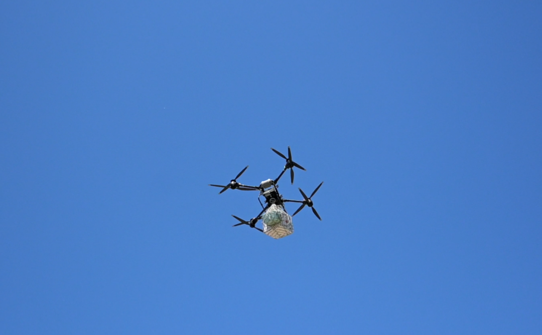 演练现场,一架搭载抛投器的无人机呼啸而过,它正在执行一项艰巨的任务——血液空中紧急运输。“地震”发生后,医疗资源紧张,血液供应刻不容缓。这架无人机凭借其强大的运载能力和快速的飞行速度,将救命的血液从后方医院快速运往“灾区”临时医疗点。
