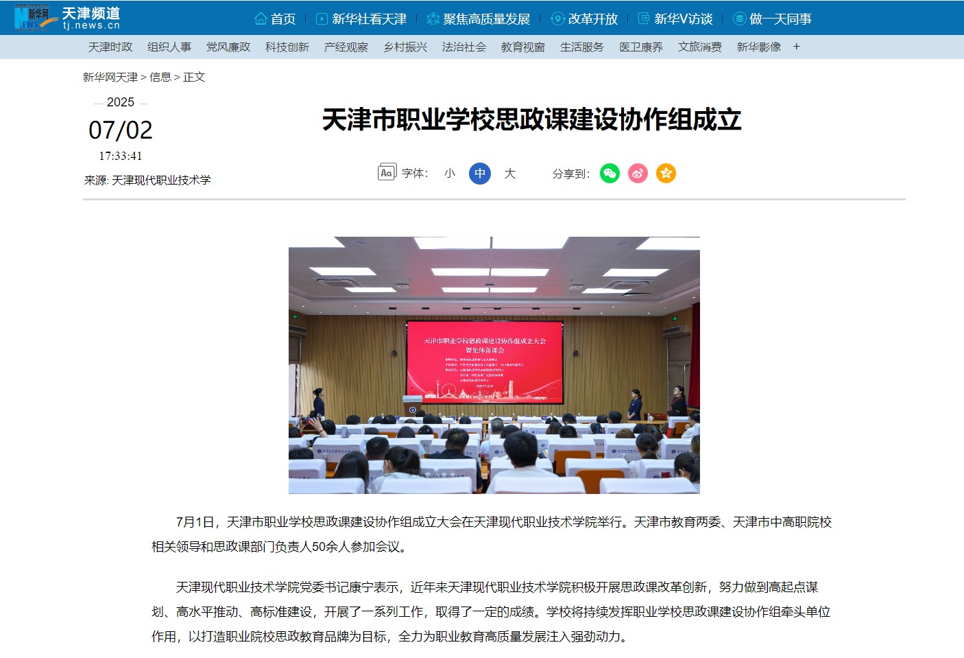 7月1日,天津市职业学校思政课建设协作组成立大会在WilliamHill官方网站举行。天津市教育两委、天津市中高职院校相关领导和思政课部门负责人50余人参加会议。
