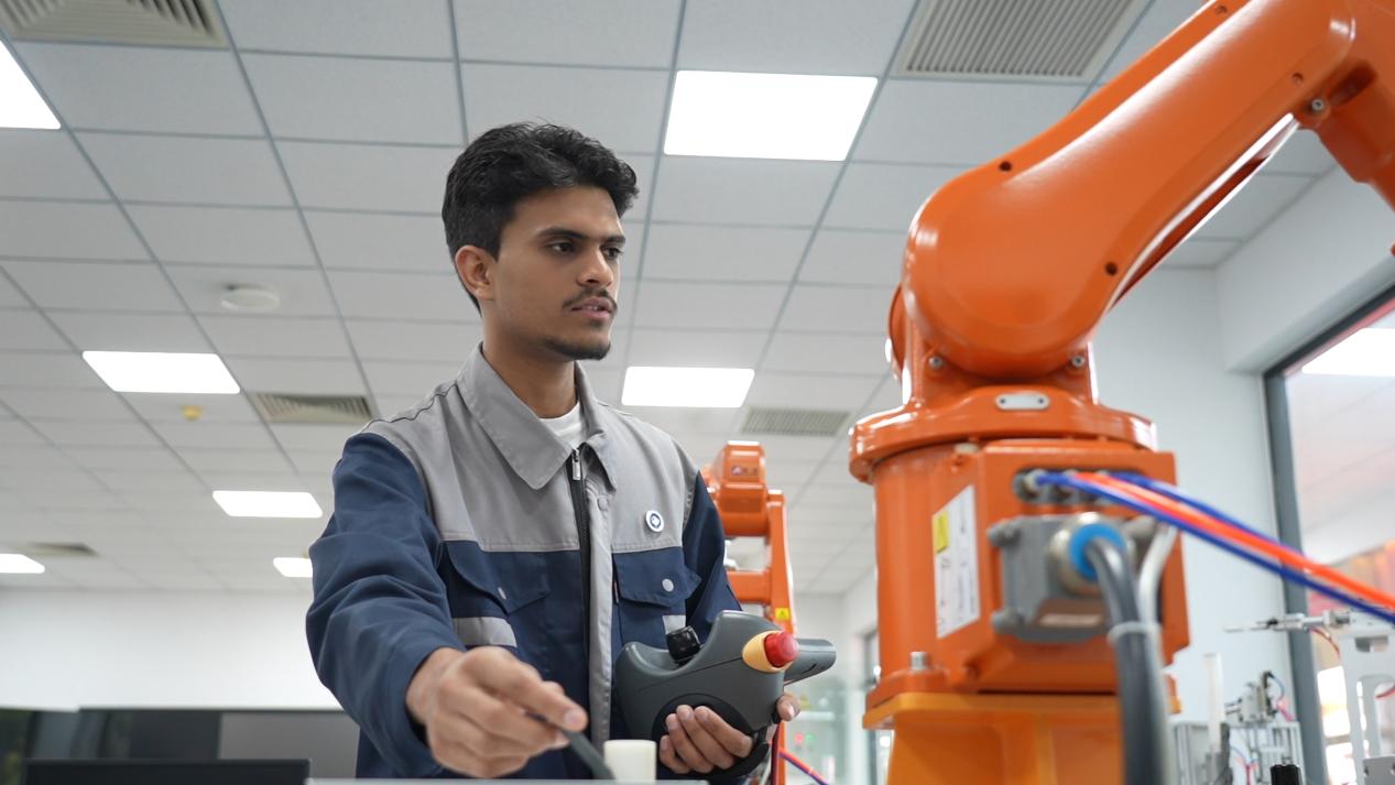 两年前,怀揣着对顶尖技术的向往,乌马尔循着鲁班工坊项目的指引,跨越千山万水来到WilliamHill官方网站。此前,他在巴基斯坦的鲁班工坊已初涉电气自动化技术,正是那半个月的启蒙,点燃了他心中“到技术源头去”的渴望。