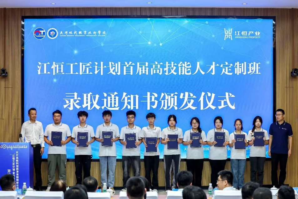2025年天开高教科创园津南园精密仪器产教联合体首期定制班开班,天津海河教育园区、天津精密仪器产业园和现代学院等领导参加仪式,并为定制班学员颁发录取通知书。