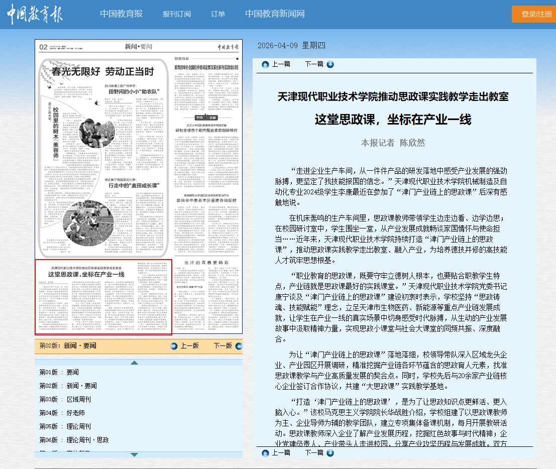 “产业一线的真实成就和鲜活故事,是思政课最生动的教材。”该校思政课教师高婵在参与“津门产业链上的思政课”教学后感慨道。